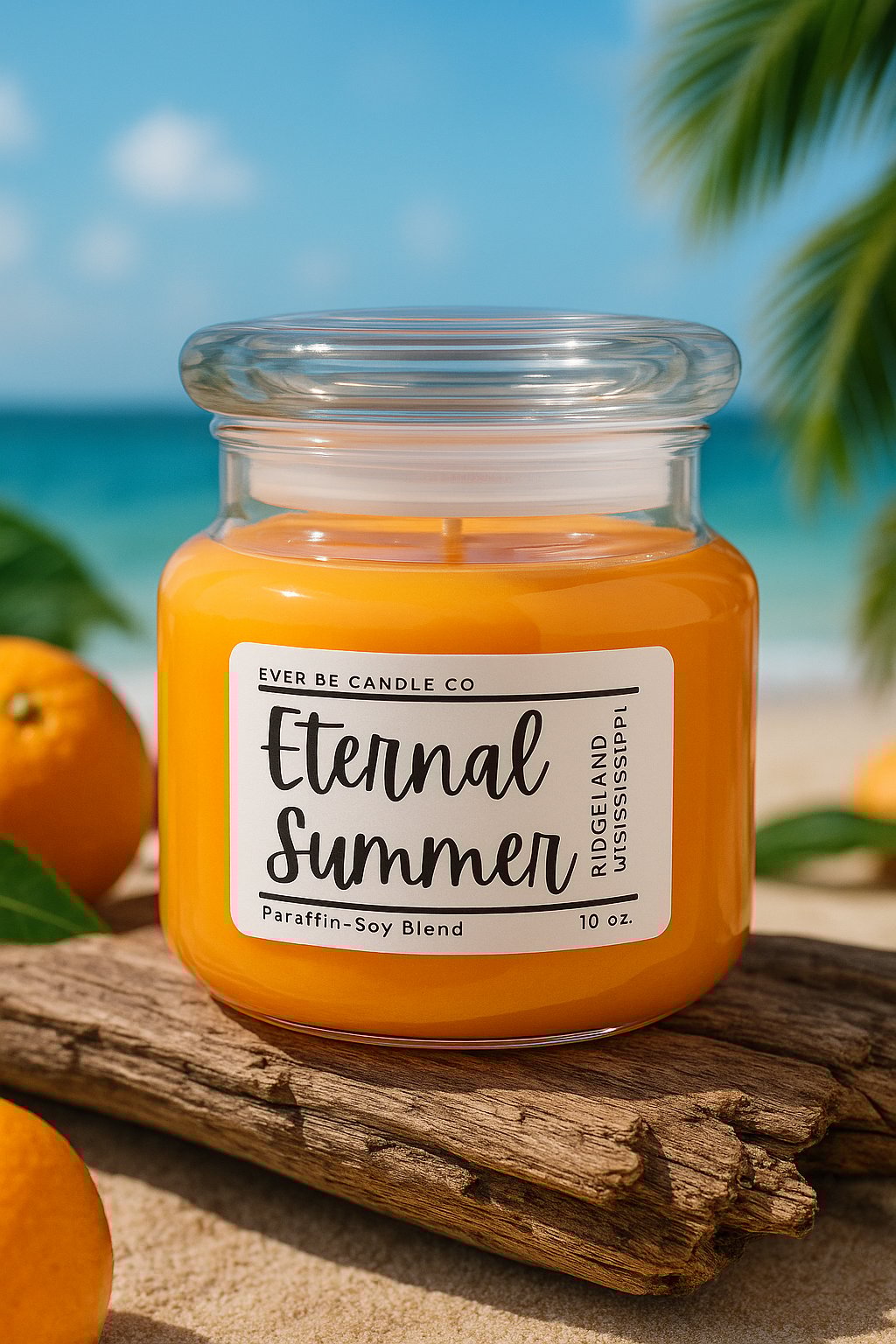 Carry the warmth of summer into every season with Eternal Summer. Bright notes of ripe fruit and fresh waters open the fragrance, unfolding into a heart of tropical blooms and exotic foliage. At its base, smooth driftwood lingers, grounding the lush sweetness with a touch of coastal calm. Double-wicked in a glowing orange vessel, this special edition candle captures the joy of late-summer sunsets and the promise of endless horizons. Hand-poured in small batches from our home in Ridgeland, Mississippi, each candle is crafted with a paraffin-soy wax blend for a clean, lasting burn. Eternal Summer is a September exclusive — a golden reminder that sunshine can last all year.